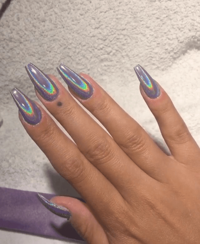 For something futuristic yet fun, try iridescent or holographic nails that shift colour depending on the light. These nails are perfect for the winter months when you want your nails to stand out with a multi-dimensional effect that catches the eye.