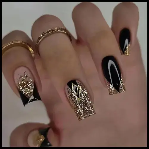 - A combination of black tips with gold accents adds a luxurious vibe to your nails, making them perfect for holiday parties.