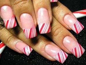 - Bring holiday joy to your fingertips with candy cane-inspired stripes on your French tips. Red and white or red and green combinations are especially fun!