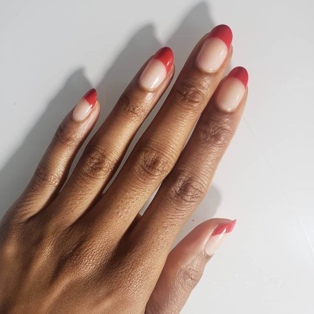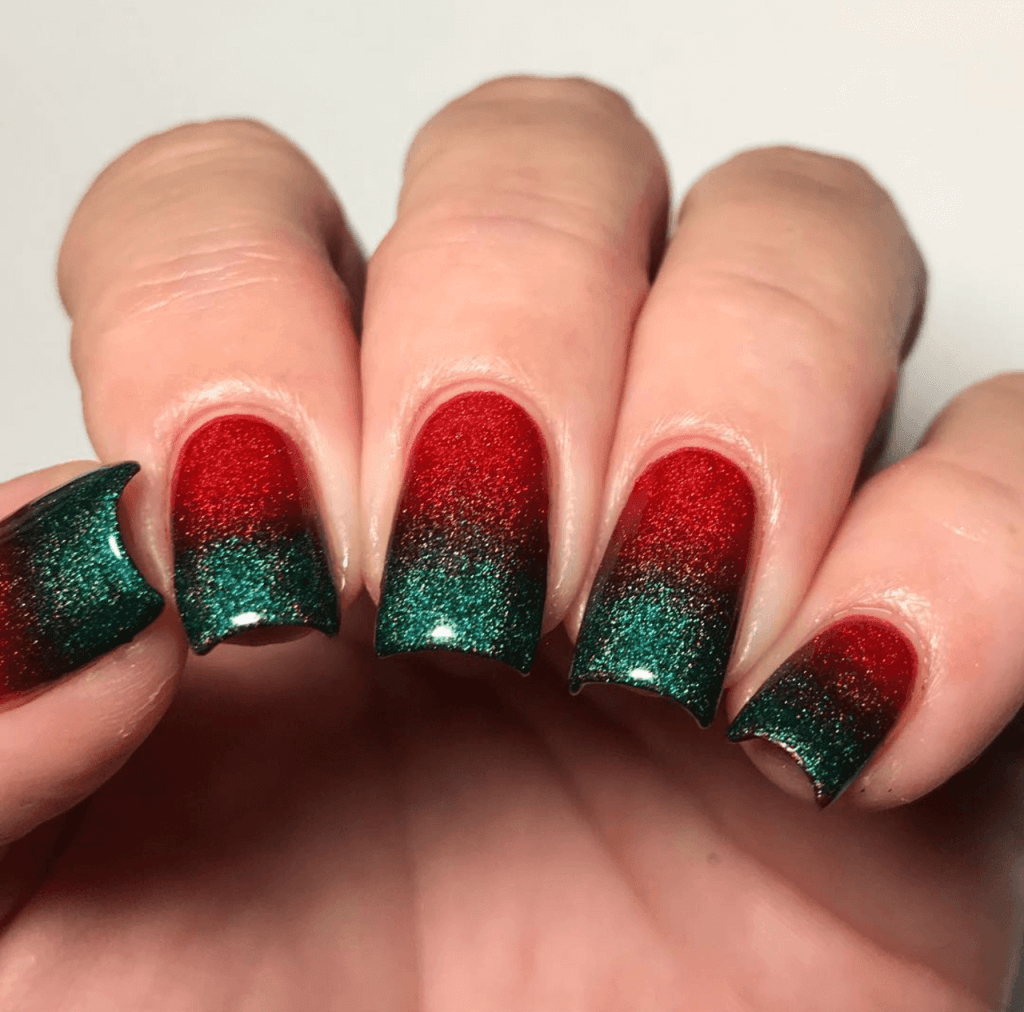 - Blend red and green in an ombre style on your French tips for a playful and festive look that’s perfect for December.