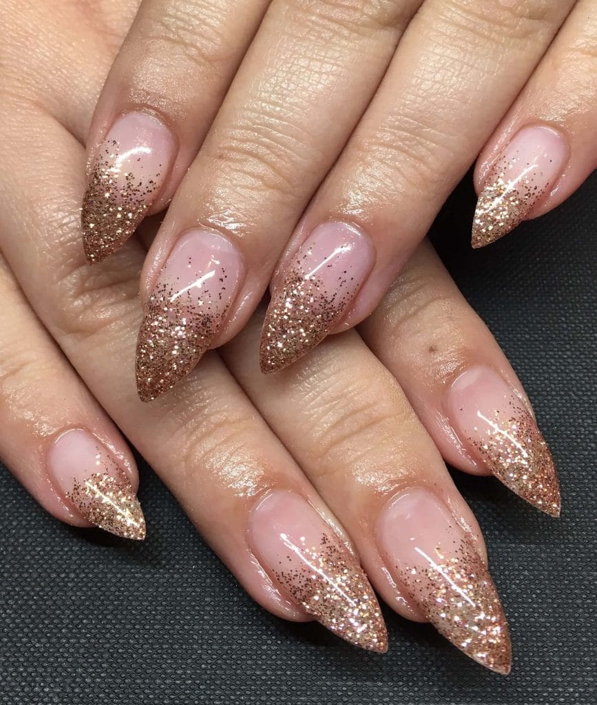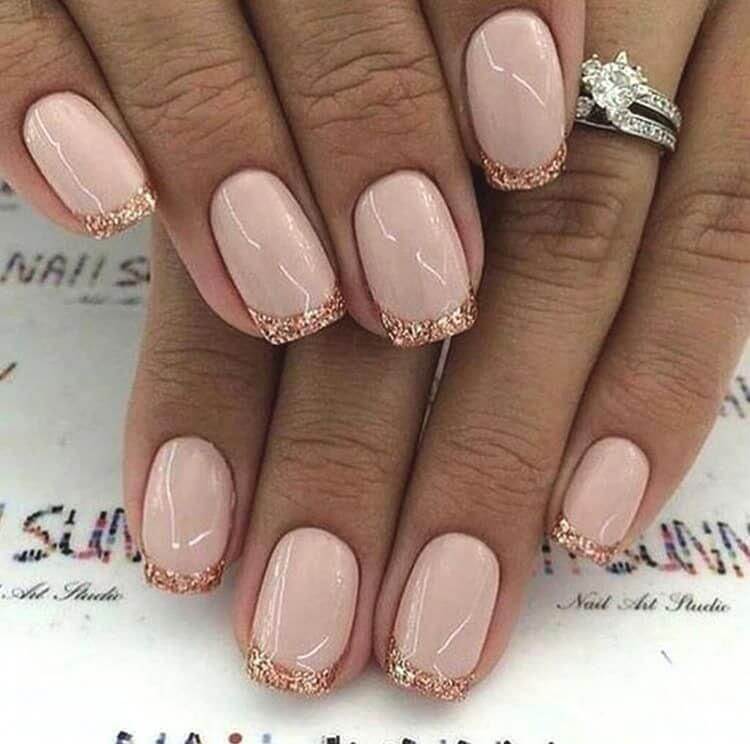 - Add a touch of sparkle to your nails with a gold glitter fade on your French tips. Perfect for holiday parties and New Year’s Eve celebrations.