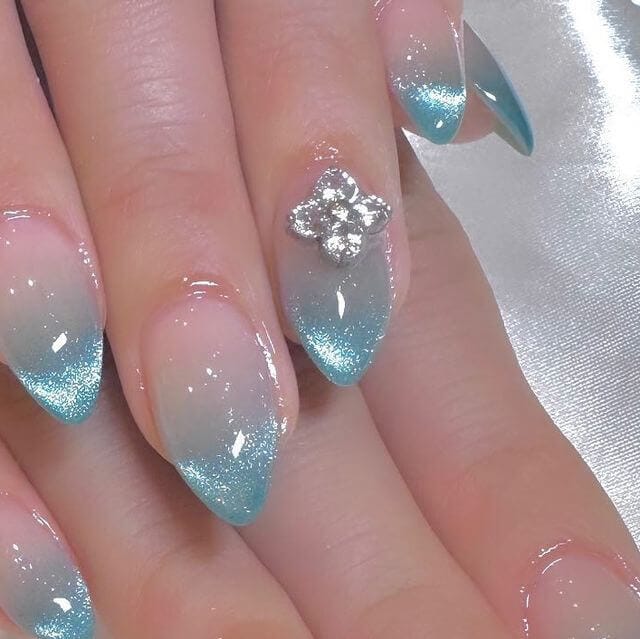 - Embrace winter’s cool tones with frosty blue tips that mimic the shimmer of freshly fallen snow. Top with a clear coat for an icy look.