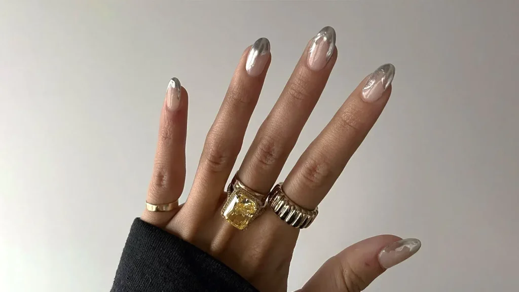- Silver-tipped nails on a nude base make a subtle yet stylish statement, ideal for those who want a hint of shimmer without going overboard.