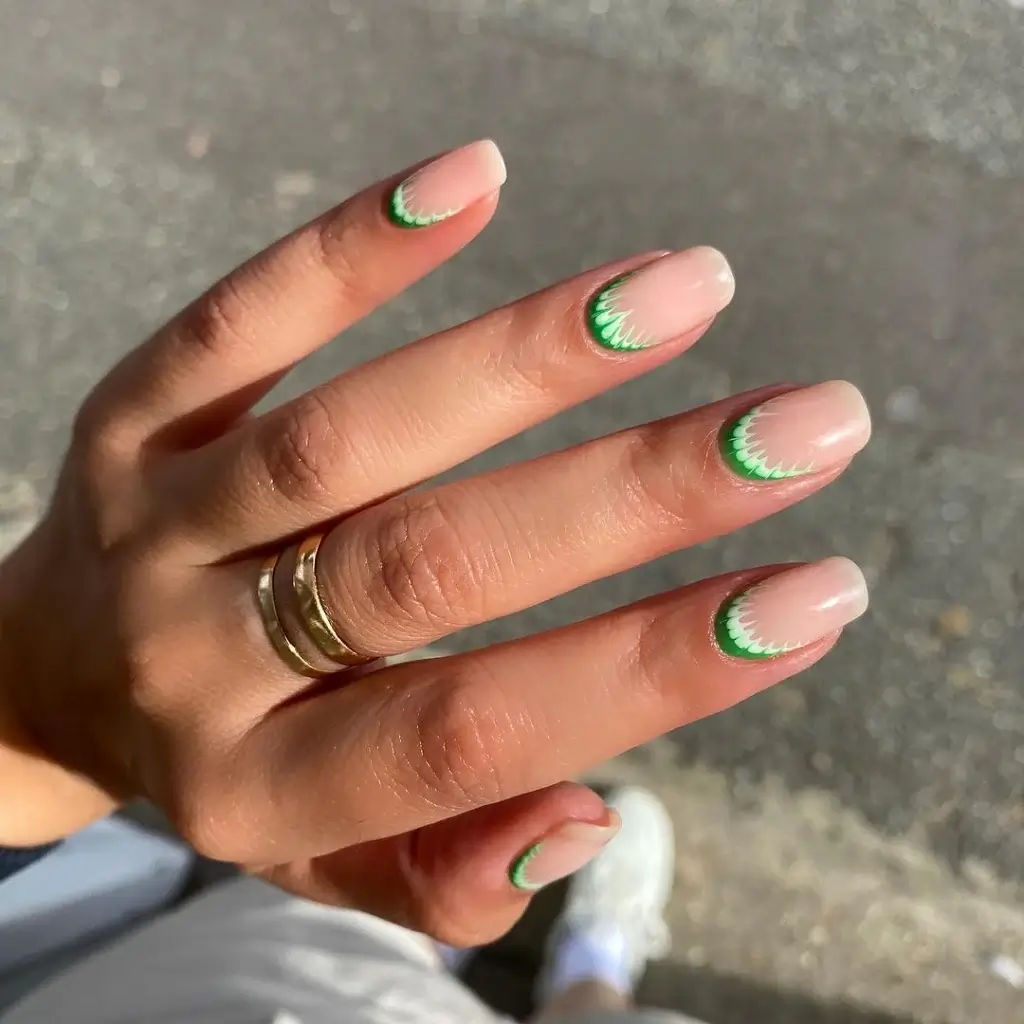 - Combine green and gold for a sophisticated holiday-inspired French tip. This combo is festive and elegant for November and December events.