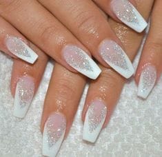 - Start with a thin French tip and build up with gradient glitter for a glamorous look that catches the light with every movement.