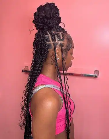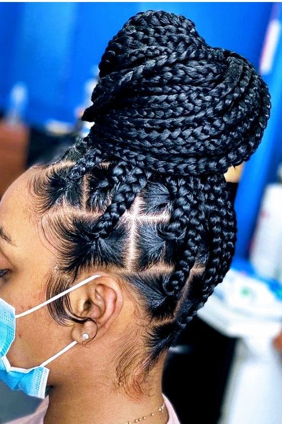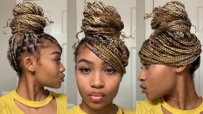 A sculptural bun is a unique way to style your braids, featuring an intricate twist or braid pattern for an artistic and stylish look.