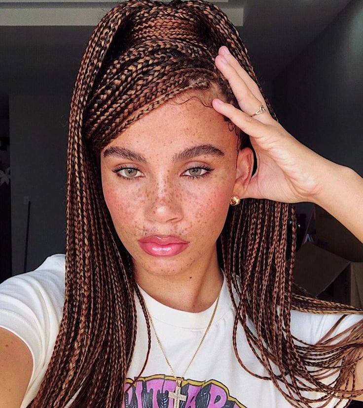 Switch up your regular middle part by flipping your braids to one side. This effortless look adds volume and a touch of drama to your hairstyle.