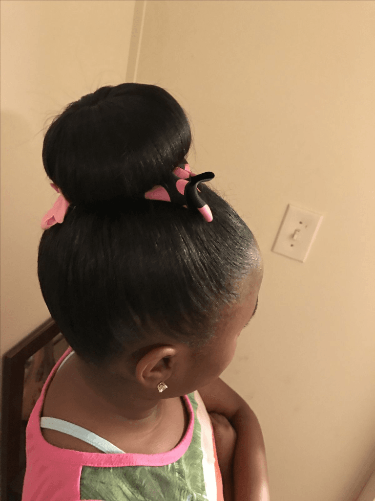 The low chignon is an elegant, low-maintenance style that works well for girls with long hair. It’s secure and stays in place, making it ideal for long school days.