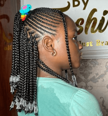 Braided pigtails are playful and neat. You can add colourful hair ties to match their school uniform or personal style.