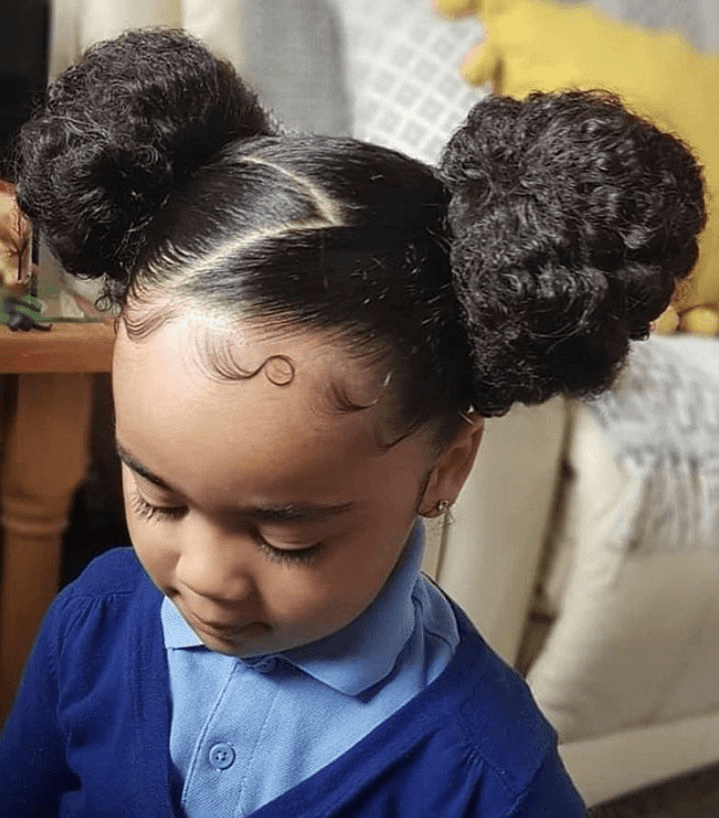 For a quirky and playful hairstyle, try space buns. Simply divide the hair into two sections and twist them into buns on either side of the head. It’s both cute and fun for girls of all ages.