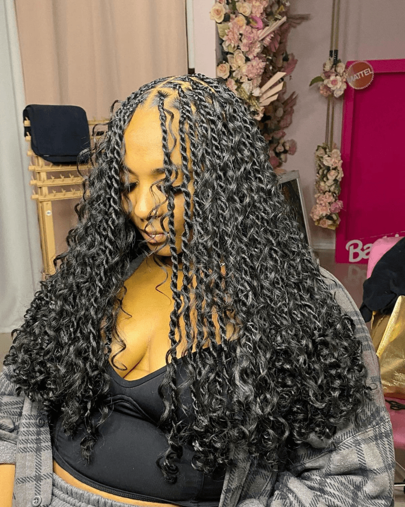 Island Twist Braids combine two-strand twists with loosely curled or wavy extensions, resulting in a soft, voluminous style that mimics a carefree, tropical aesthetic. The name itself evokes the breezy charm of coastal islands, and the style delivers just that — beauty with movement, texture, and personality.