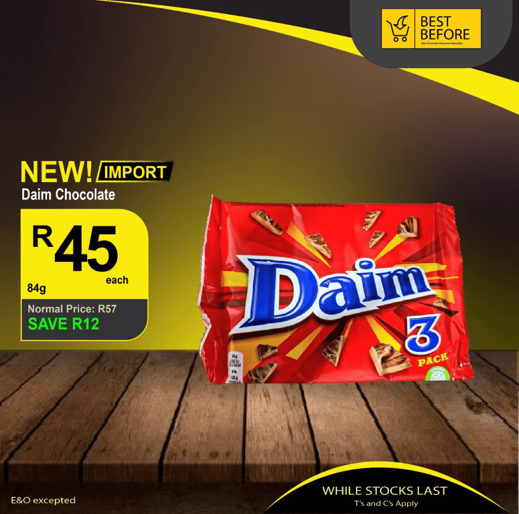 - Daim Chocolate (Imported) – Was R57, now only R45 (Save R12).
