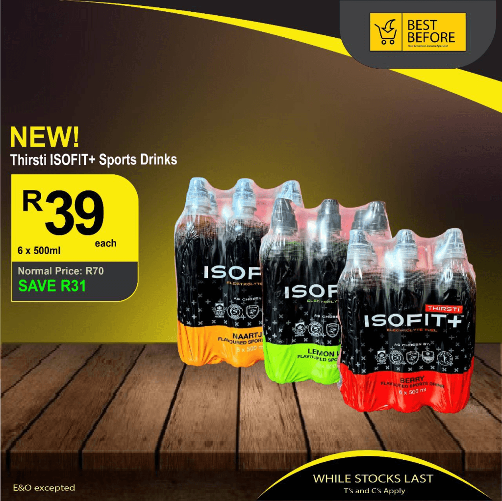 - Thirsti ISOFIT+ Sports Drinks – Was R70, now only R39 (Save R31).