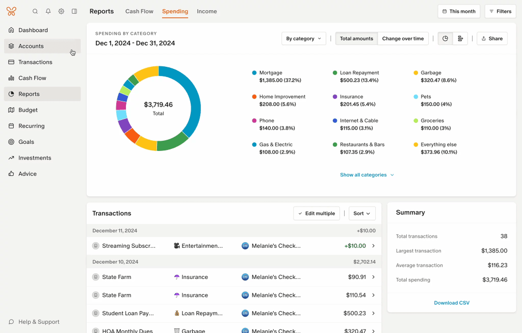 Monarch Money offers advanced features like investment tracking, net worth calculation, and financial forecasting. It’s aimed at users with multiple income streams or investment portfolios.