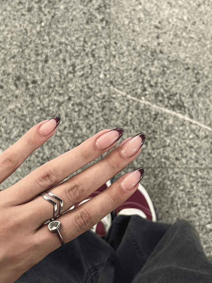 Matte nails are having a moment. Combine a matte topcoat with dark purple tips for a modern, velvety finish. This look feels luxurious and minimalist at the same time.