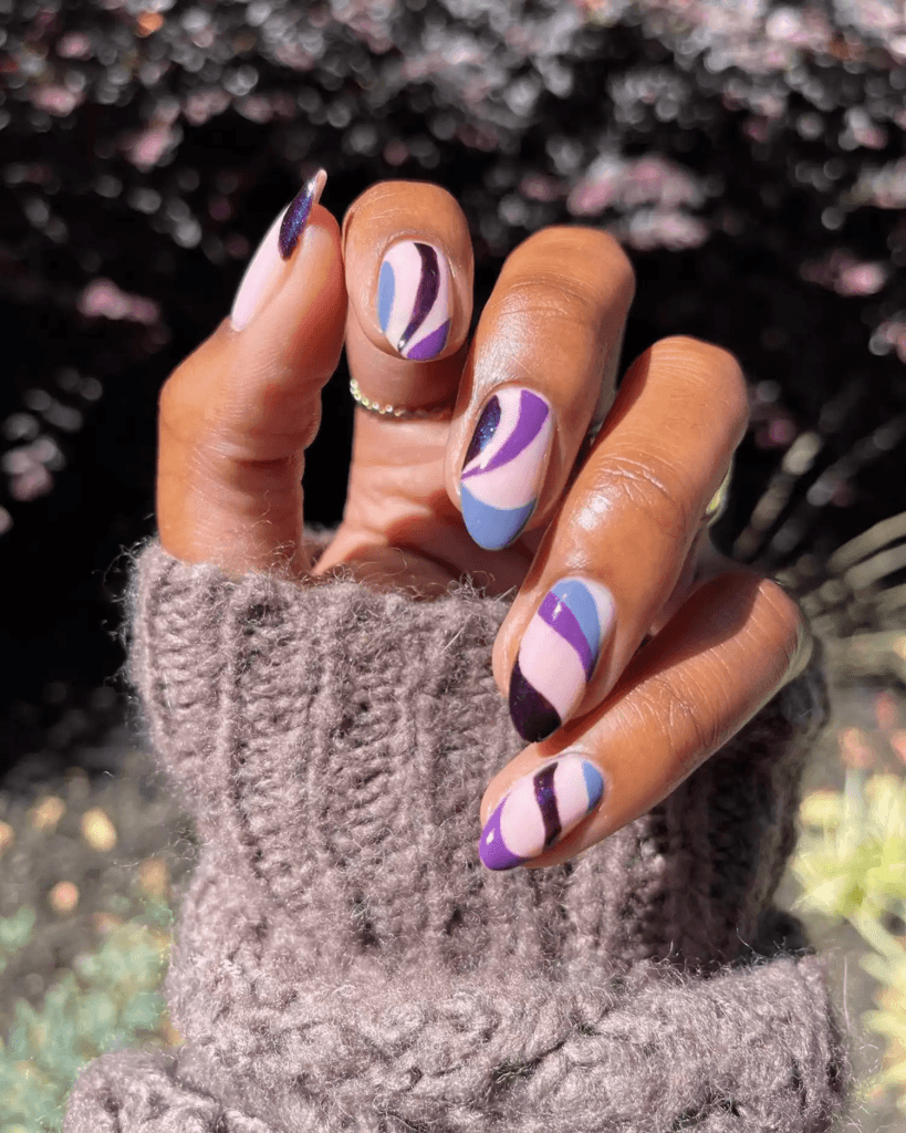 This timeless look updates the traditional French manicure with a deep purple twist. Opt for a nude or soft pink base to let the dark purple tips stand out. It’s perfect for both everyday wear and formal occasions.