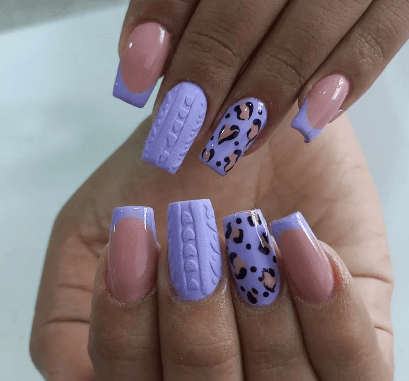 Incorporate animal print on one or two nails to make your French tips pop. A dark purple tip combined with leopard or zebra print creates a bold, trendy style. It’s a great conversation starter.