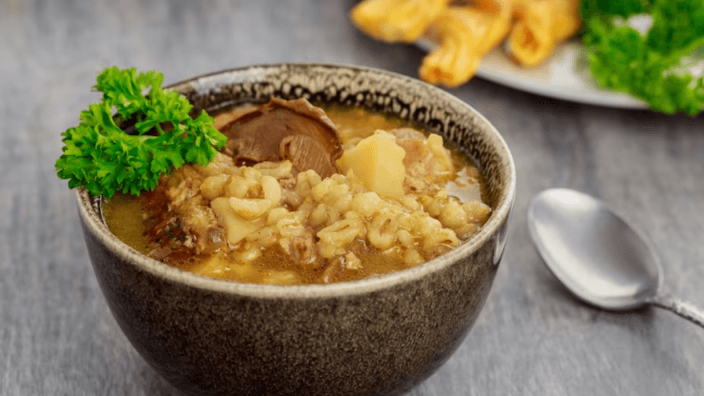 Simmer on low heat for 1.5 hours or until beef and barley are tender. Season and garnish.