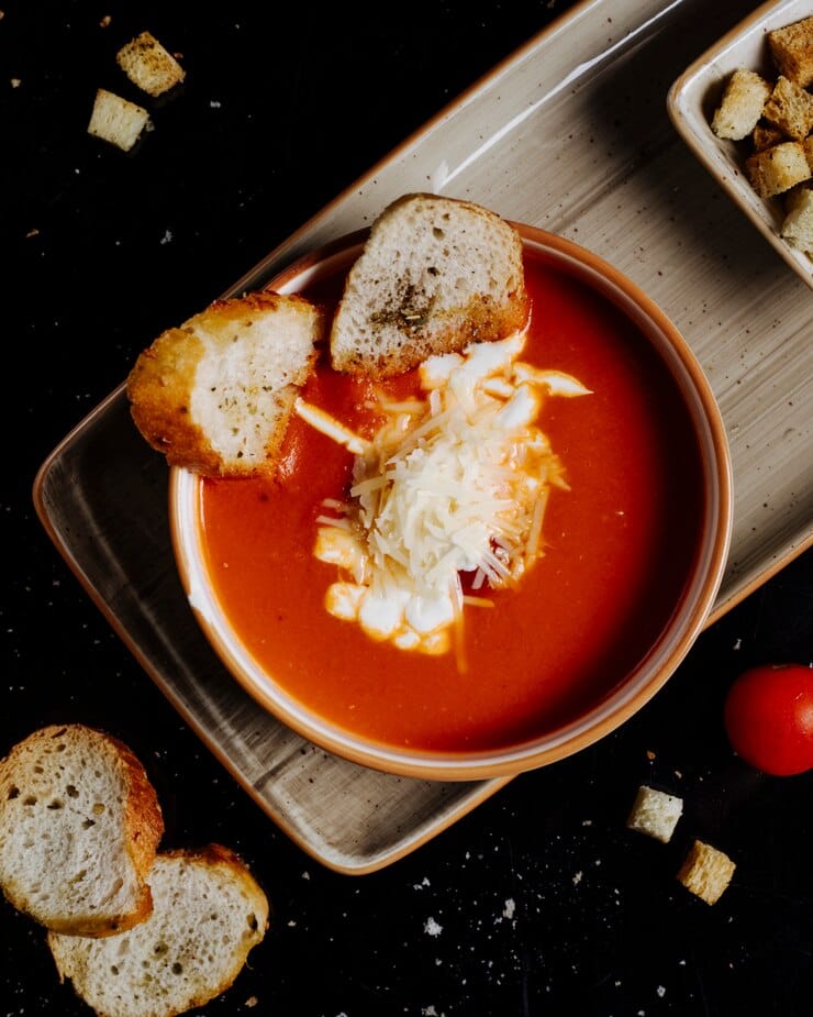 🍅 6. Tomato Basil Soup with Grilled Cheese Croutons