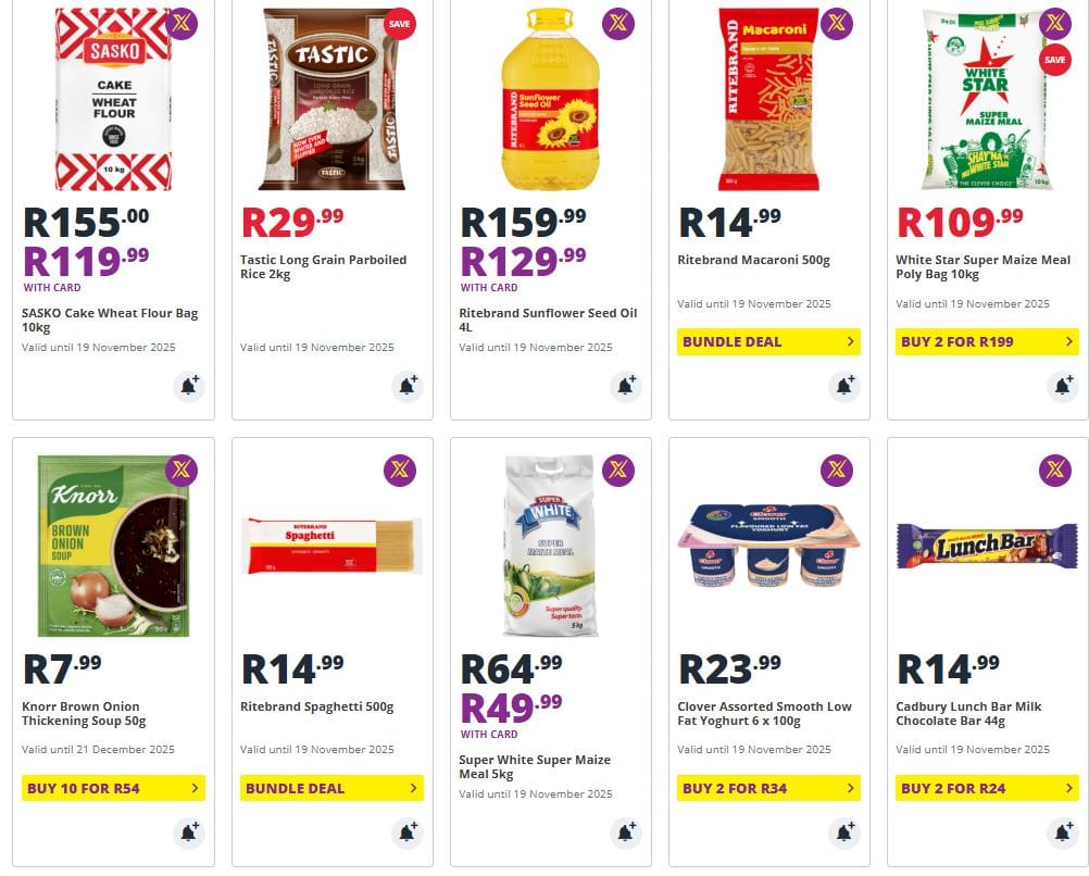 - White Star Super Maize Meal 10kg – Buy 2 for R199 (valid until 19 Nov).