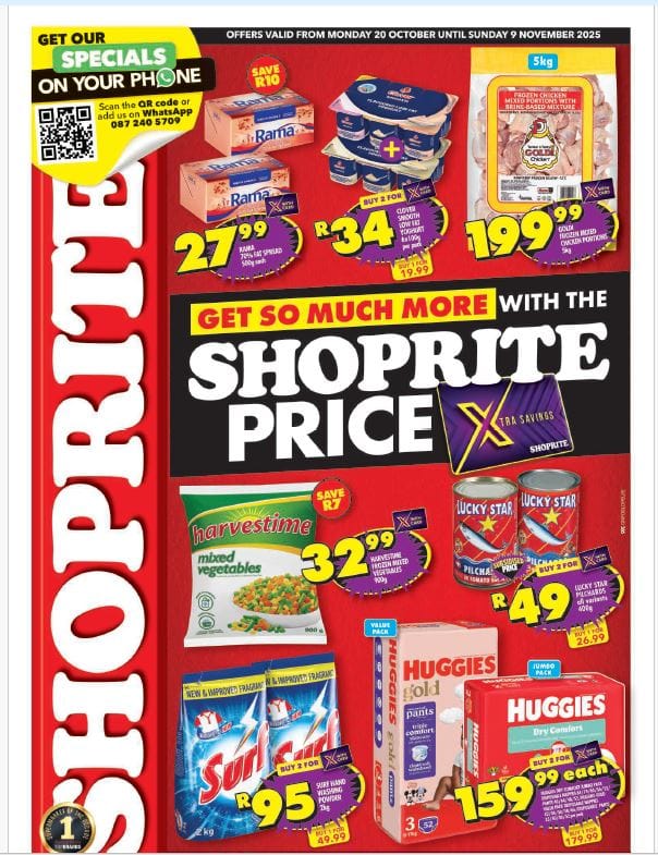If you’re looking to make your budget stretch further, Shoprite’s specials this week are the way to go. With discounts across multiple categories, you’ll be able to stock up on essentials and enjoy extra savings. Don’t wait, head to Shoprite from 20 to 26 October 2025 and grab these deals before they’re gone!