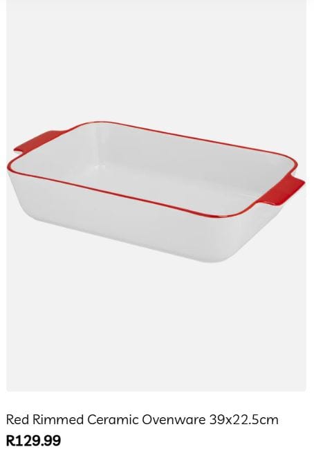 - Oven-to-Table Beauty: Red Rimmed Ceramic Ovenware (R129.99)