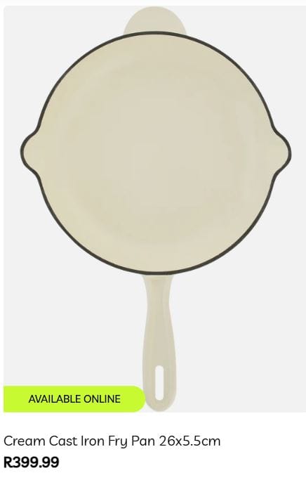 - The Cream Cast Iron Fry Pan (R399.99): Your Kitchen Workhorse