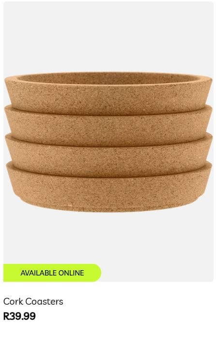 For under R40, you can protect your furniture and upgrade your decor. Cork Coasters are back in style, offering a natural look that pairs beautifully with wood, marble or glass tables. Heat and moisture-resistant, they’re a small change that makes a big difference.