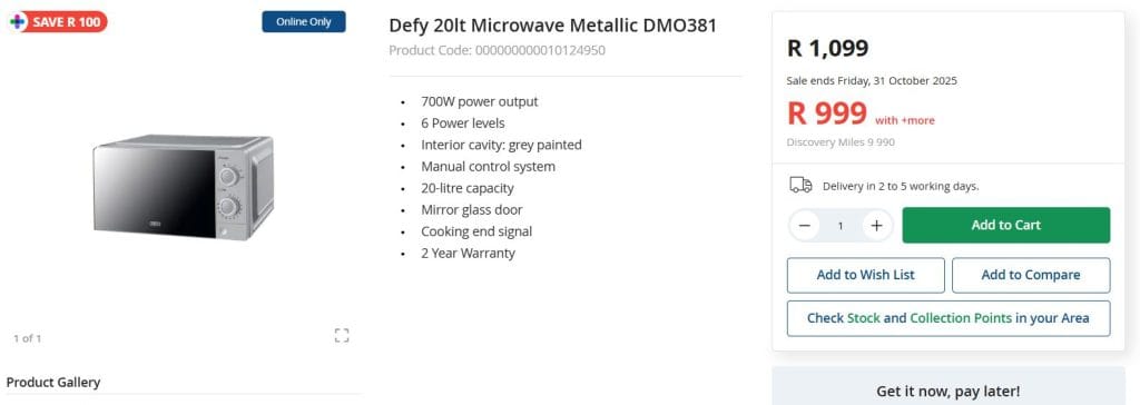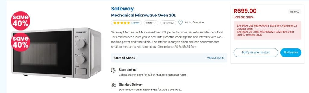 Online purchases offer convenience and, often, better prices. However, in-store shopping allows you to inspect the appliance and ask about warranties. For high-demand brands like Defy and Russell Hobbs, local stores may provide quicker after-sales service.