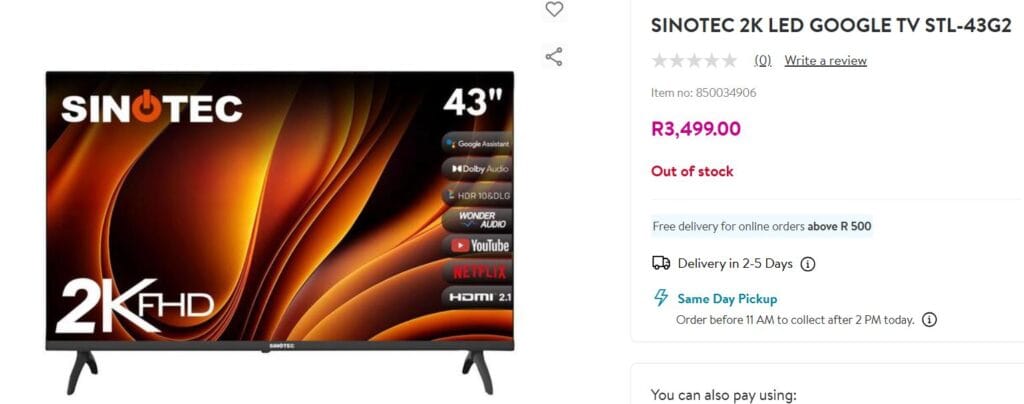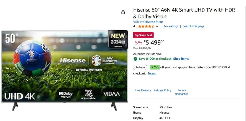 Smart TV prices have dropped significantly in the last few years. Manufacturing costs have decreased, and local retailers have improved distribution. As a result, you can now find 50” and even 55” 4K UHD TVs for under R6000.